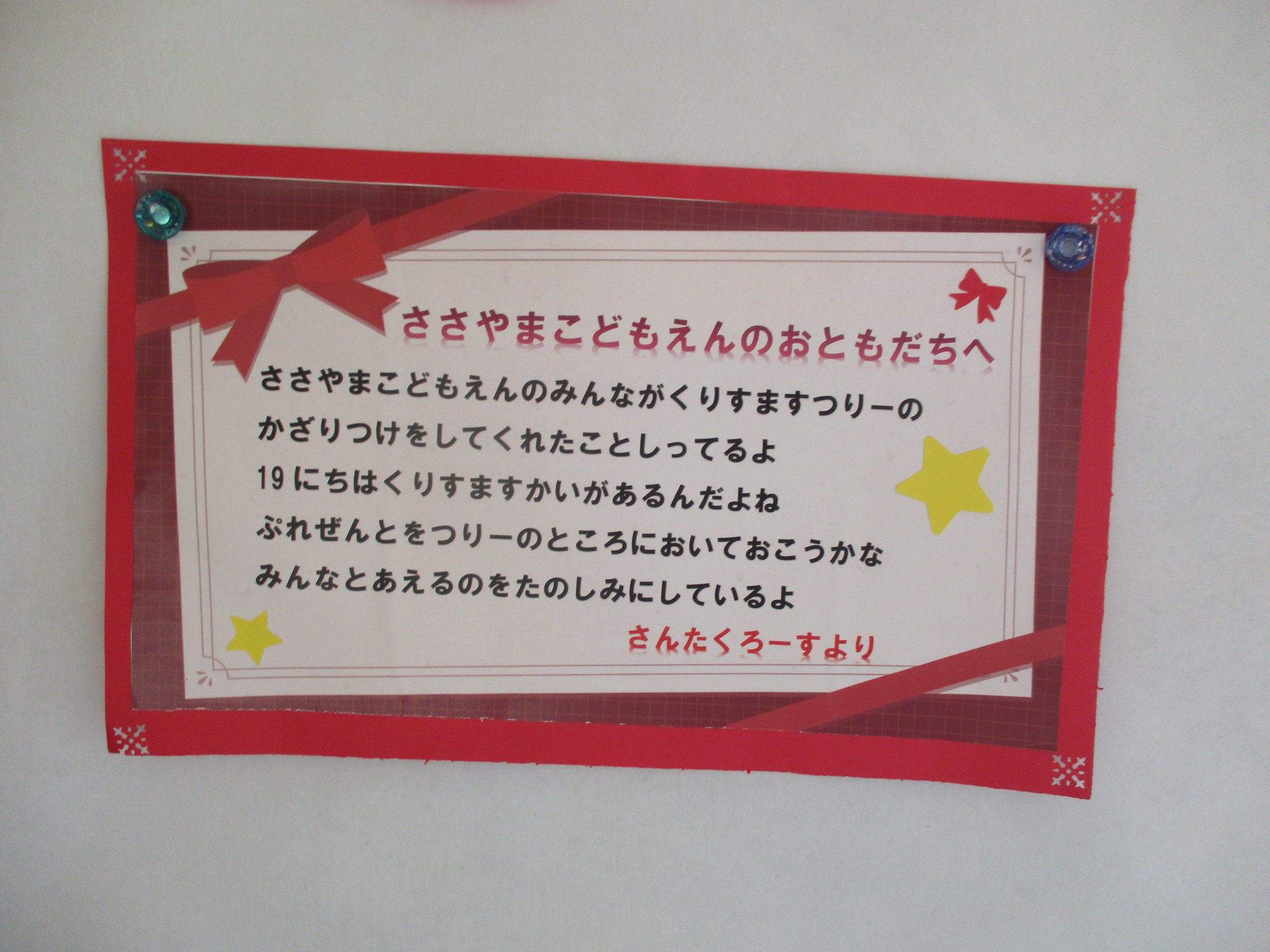 ◎12月19日金曜日、ささやまこども園にもサンタクロースさんが来てくれました!(^^)! ・その前に...