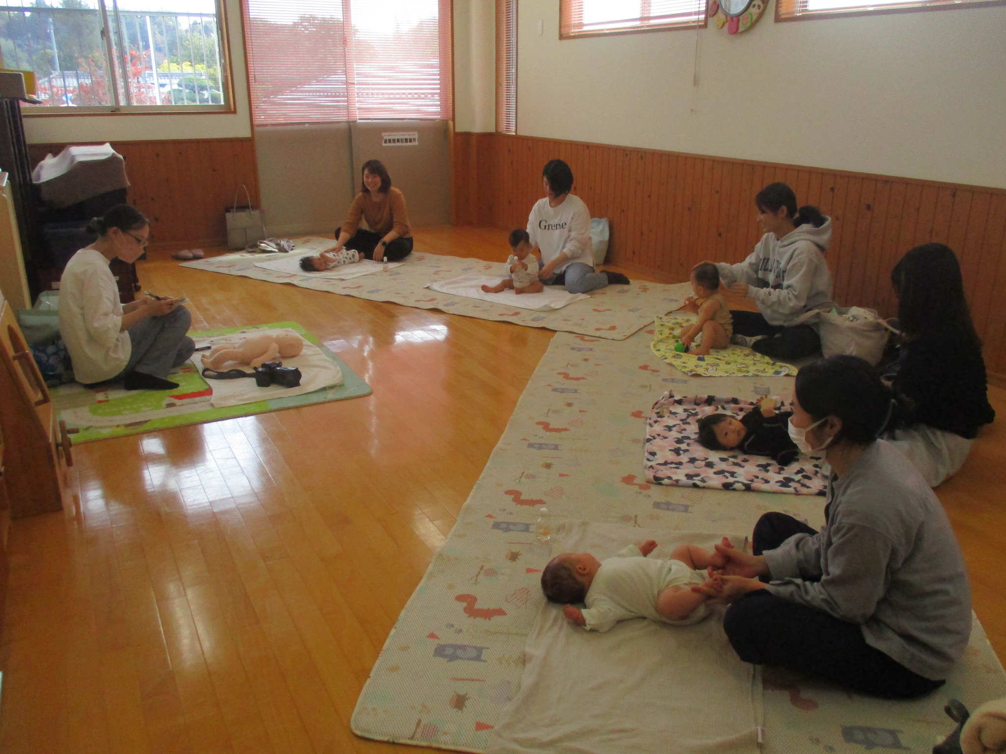 ◎11月12日水曜日、11月のベビーマッサージがありました。今回は5組の参加がありました。初めて参加するお友だちは2組で2ヶ月、3ヶ月のお友だちでした。