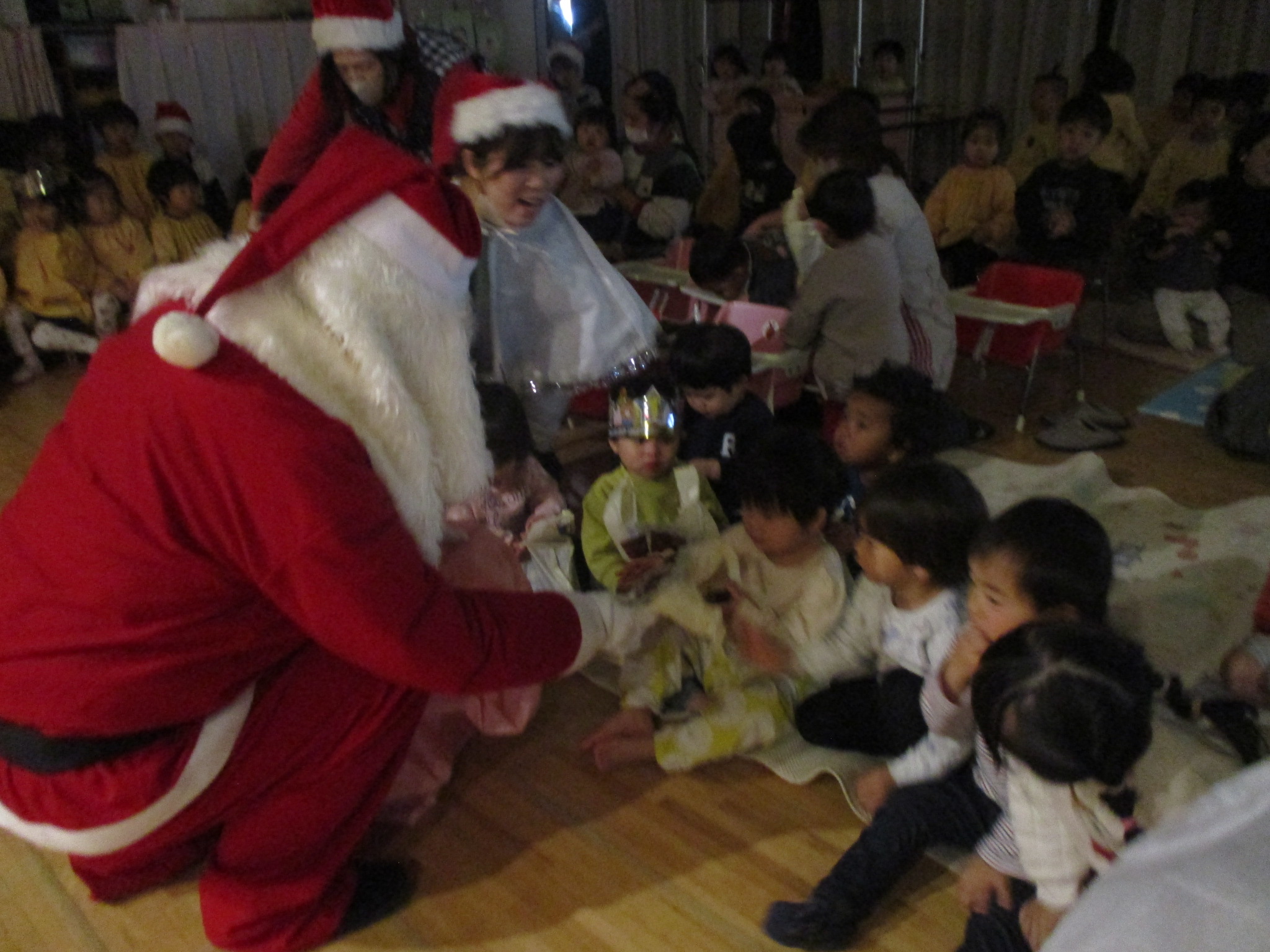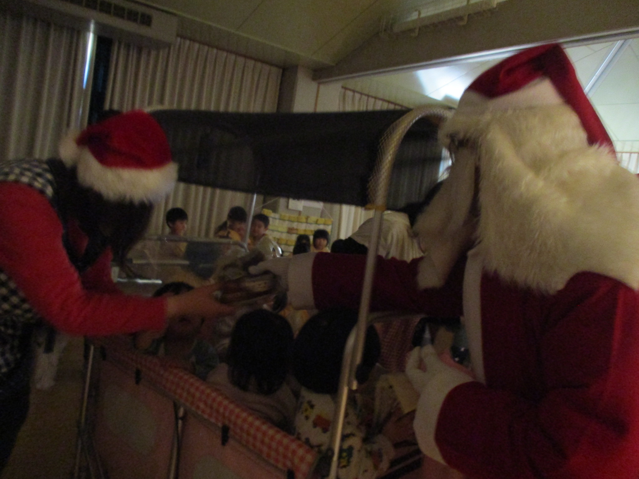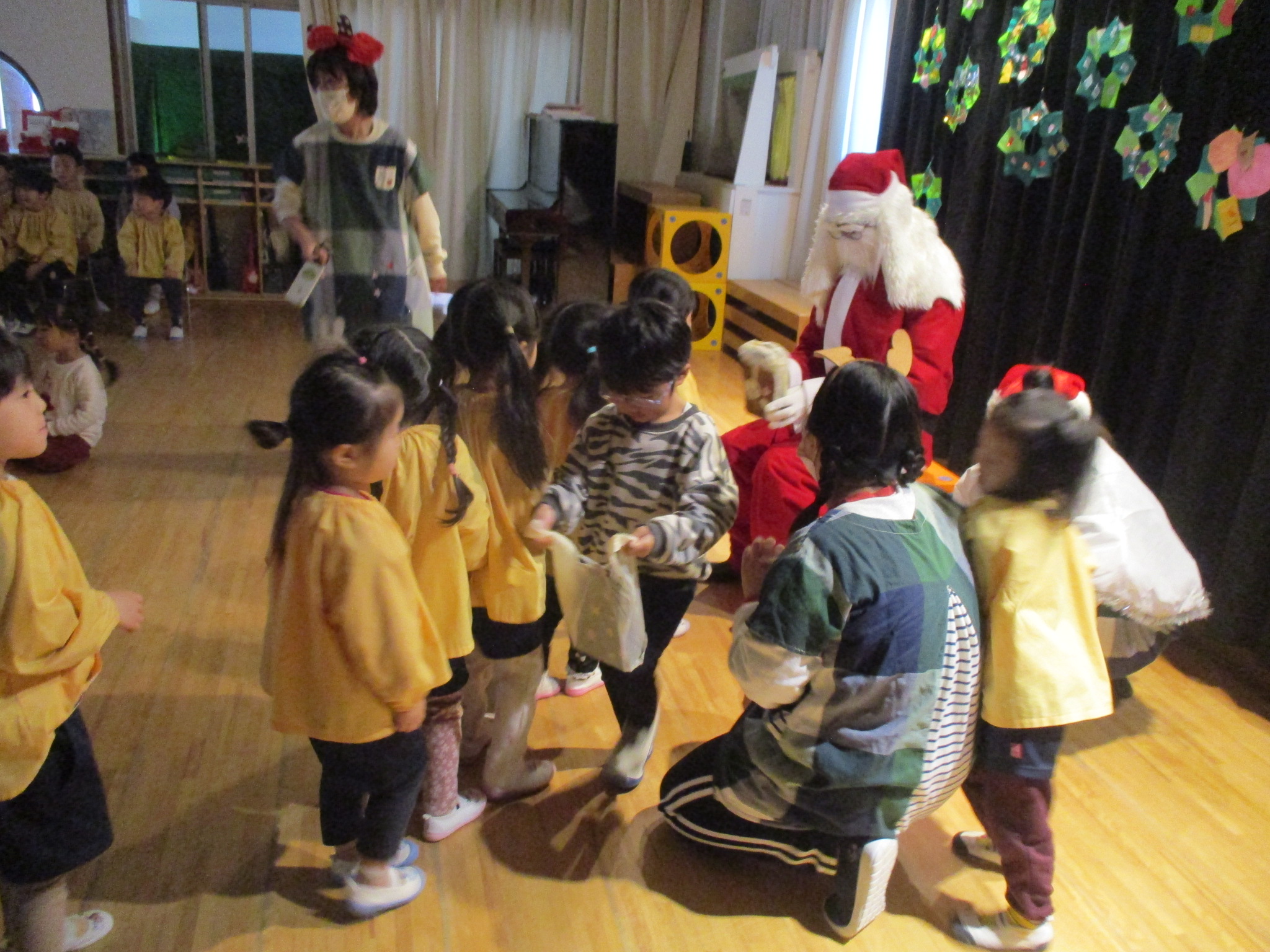 ◎ひよこ組さんは、サンタさんに頭を撫でてもらって不思議そうにしていましたが、泣く子はいなかったです(*^^*)