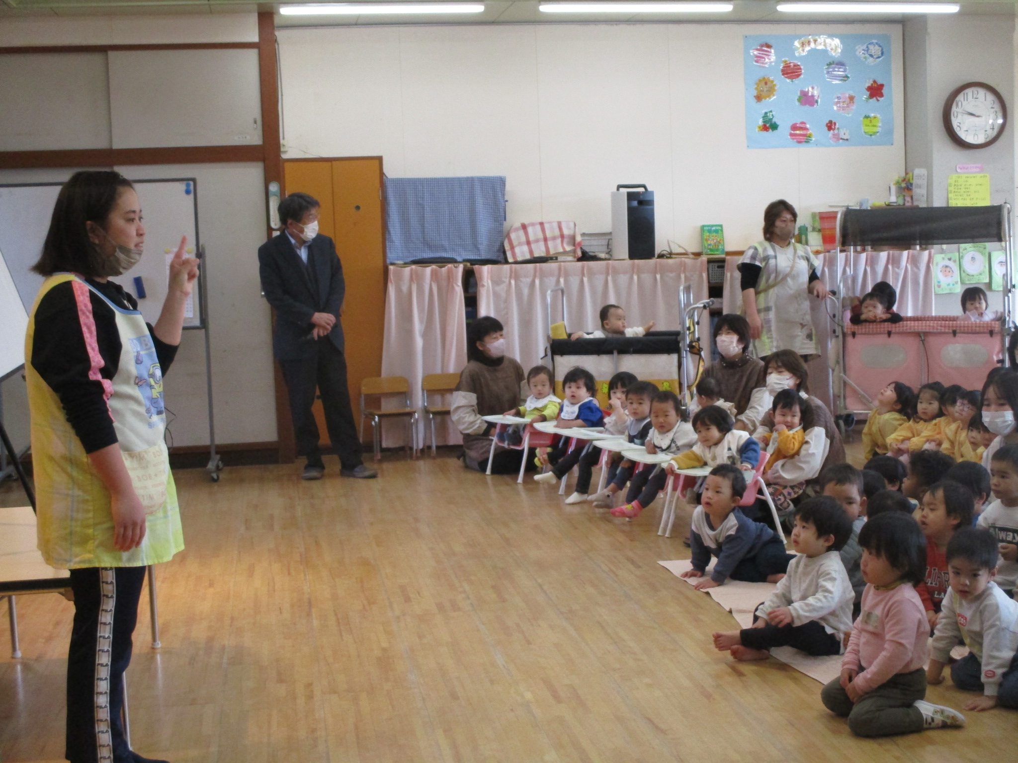 ・今年の干支の保育者も二人いて、子どもたちの前で紹介してもらいました(笑)
