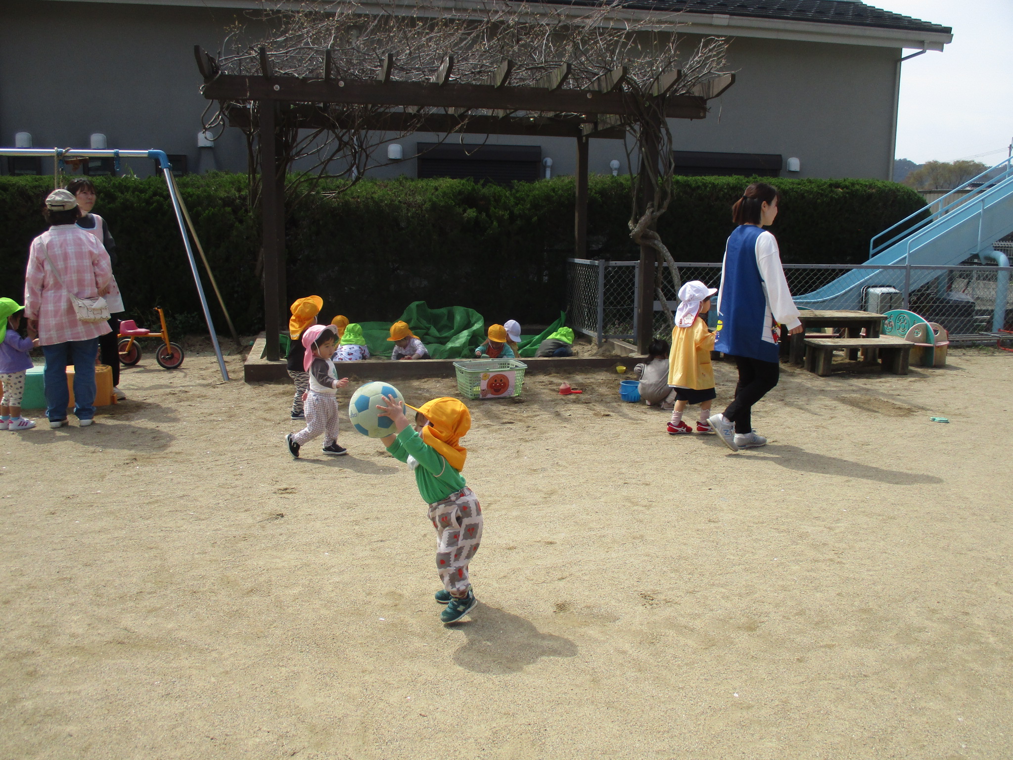 ・登園時に泣いている子も砂遊びやボール遊びなど、楽しむ姿が見られるようになりました。![]()
